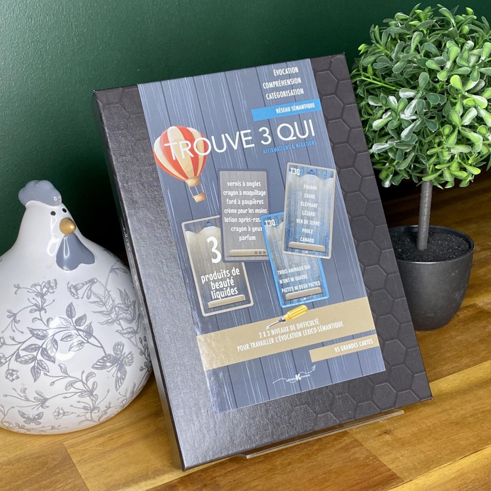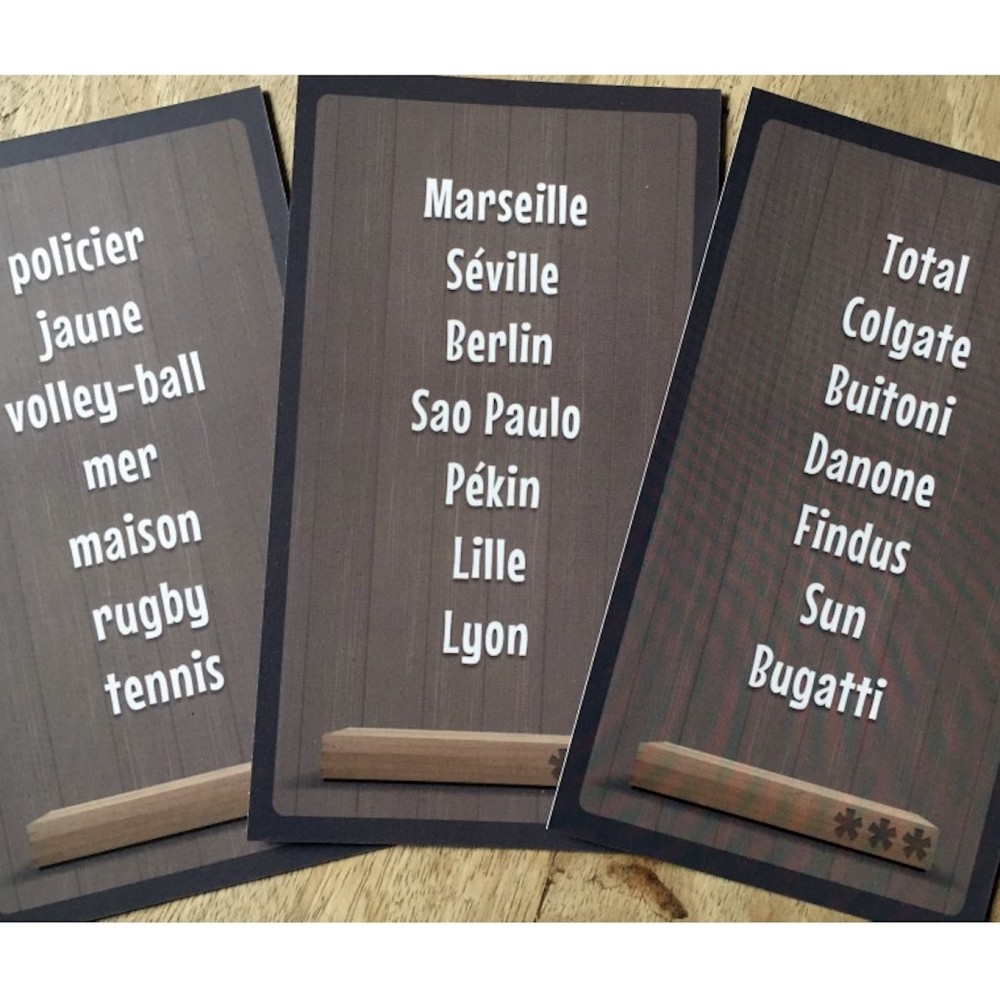 Pour aller plus loin, la liste de mots est montrée au patient qui doit trouver trois éléments à regrouper ensemble afin de trouver la catégorie au verso.