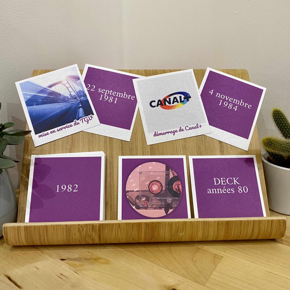lancement national du minitel, chute du mur de Berlin, élection de François Mitterrand, catastrophe de Tchernobyl, apparition du CD, mise en service du TGV, commercialisation en France du Rubik’s cube, sortie du jeu Pac Man, IBM lance le premier PC, abolition de la peine de mort, assassinat de John Lennon, sortie de la Boum, création des Restos du coeur, découverte du virus du Sida, mort de Coluche, sortie de la Soupe aux choux, sortie du Grand bleu, sortie du Père Noël est une ordure, démarrage de Canal +, lancement de Questions pour un champion